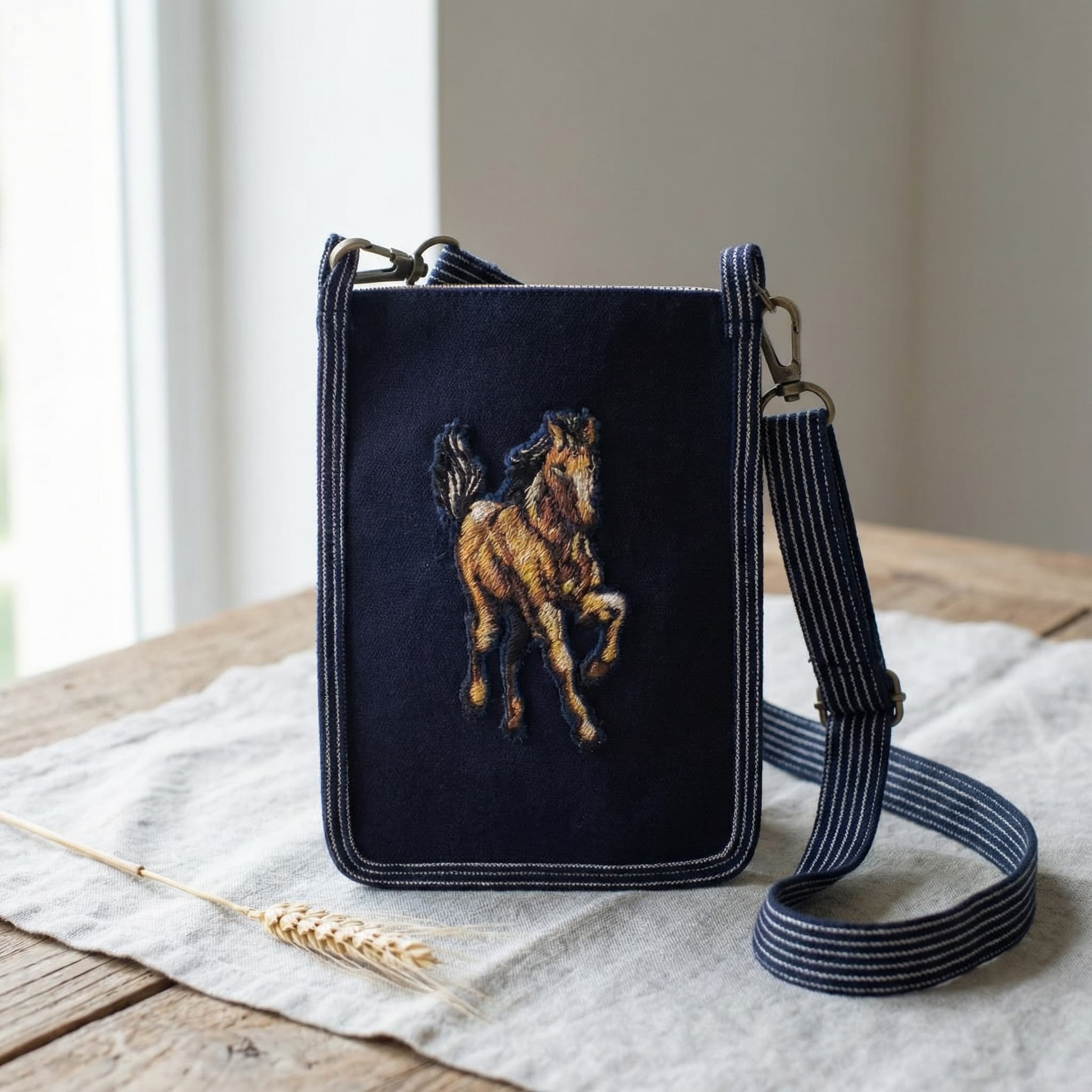 馬刺繍 スマホポーチ